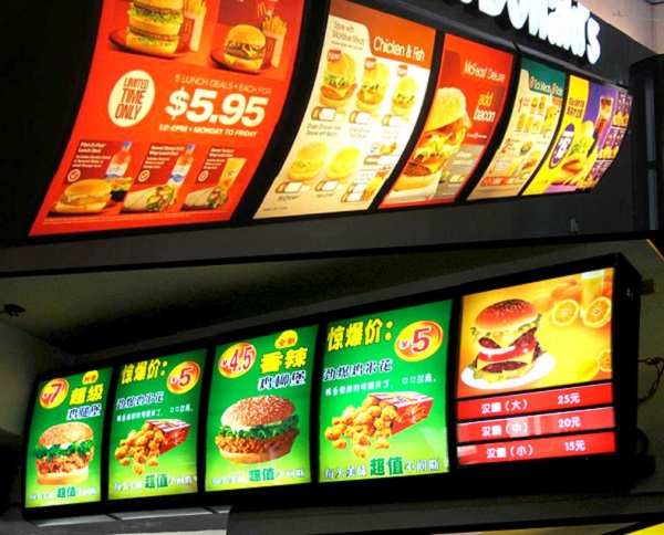在戶外燈箱廣告畫(huà)面的設(shè)計(jì)和制作方面,為追來(lái)真實(shí)感和藝術(shù)性,多采用 彩色印刷或照相噴繪;也有在殊紙張、塑料薄板(膜)、燈箱布上以絲網(wǎng)印刷的方式來(lái)制作燈箱畫(huà)面,并依據(jù)其復(fù)制成本、耐候性等要求來(lái)選擇制作方法和材料。下面來(lái)談就燈箱廣告的點(diǎn):