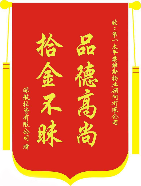 錦旗般是用彩色綢緞制成的旗子,常用來送給團體或個人以表謝意.錦旗上可以應刷不同的話語,現(xiàn)在般都是機印的,圖案和文字都可以隨意設計,色彩艷麗,環(huán)保,無污染,精致,像般常用的錦旗標語有:拾金不昧,品德高尚;業(yè)服務,值得信賴;團隊;文明楷模等。